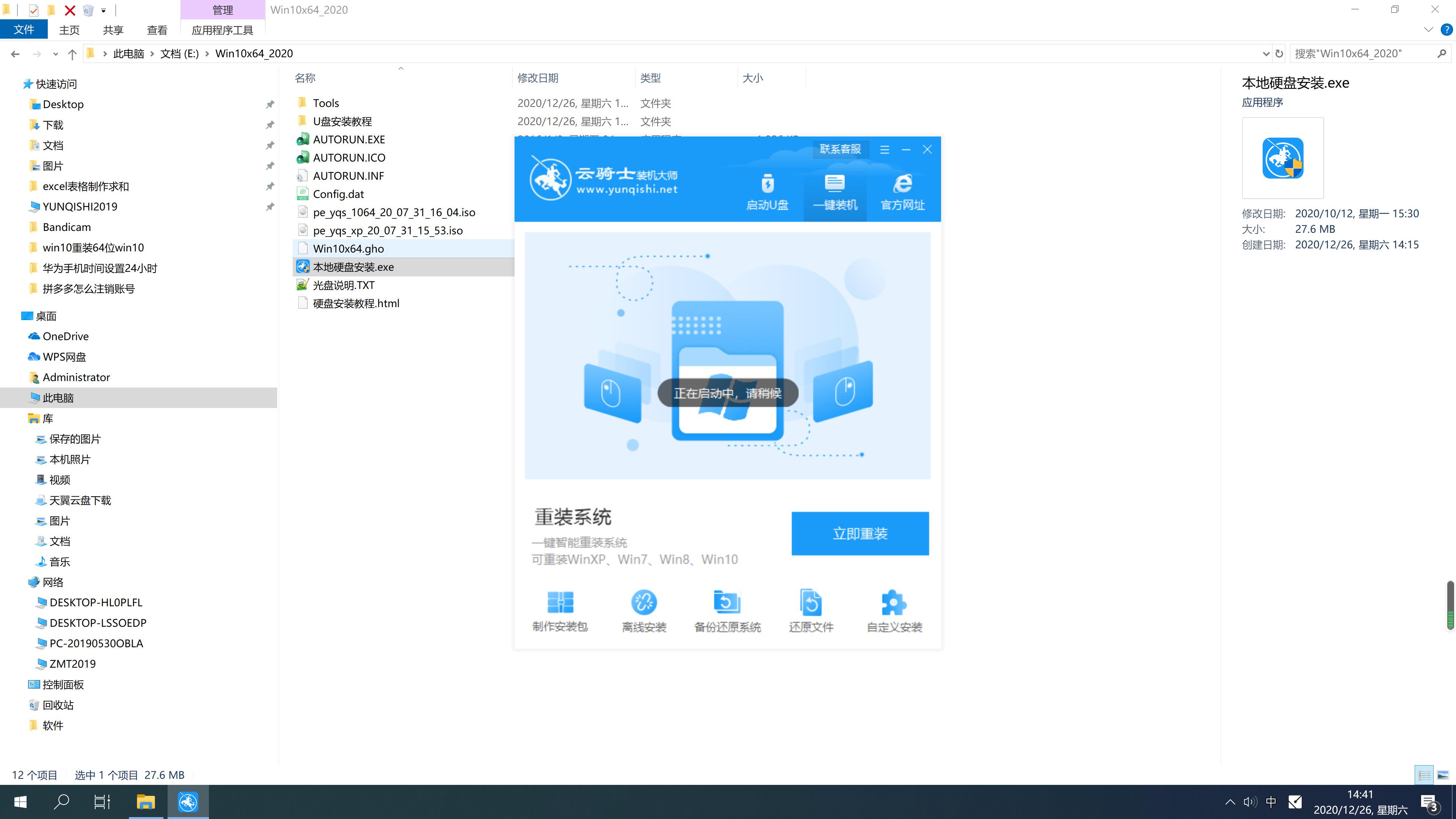 9、电脑重启时,选择YunQiShi PE-GHOST User Customize Mode进入系统。