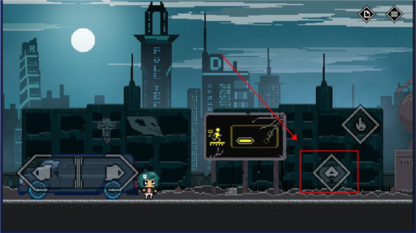 5、遇到禁止通行的大门,不能直接过去,要找到开关点击攻击,这扇门需要走到红框中的位置按跳跃,同时按攻击即可打开