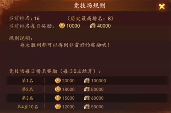 3、每日玩家的挑战次数有上限,次数可以通过时间等待添加,也可以直接消耗黄金购买次数,在累计挑战次数分别达到5,10,15,20次时可获得宝箱奖励,开启获得丰富的道具以及竞技场声望奖励。竞技场声望可以在对于竞技场商铺中兑换伙伴碎片,召唤令等丰富道具