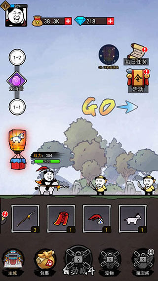 对战过程中会随机掉落武器装备和铜币,收集掉落装备合成即可提升战力。