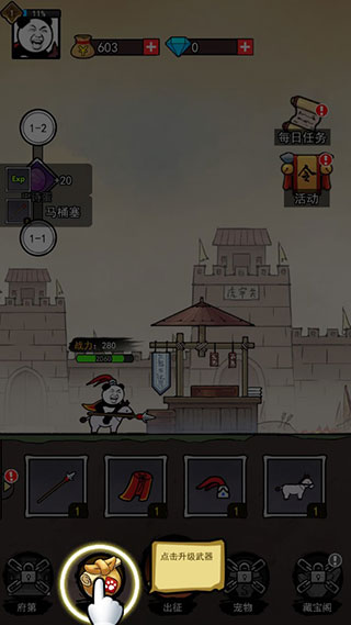 7、然后在点击界面的正中心出征按钮即可正式的进入游戏啦;