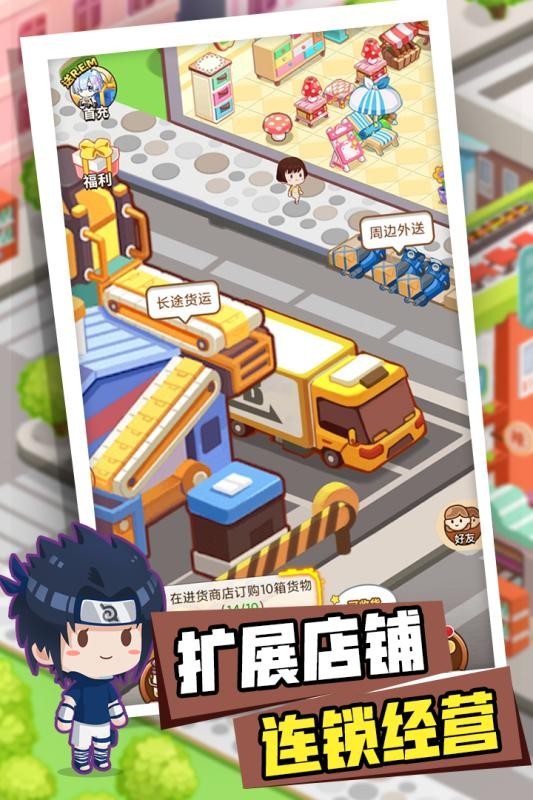 通过招待顾客、完成外卖订单、长途货运任务等不断努力,赚取资源不断发展店铺,开设分店,进行连锁经营。